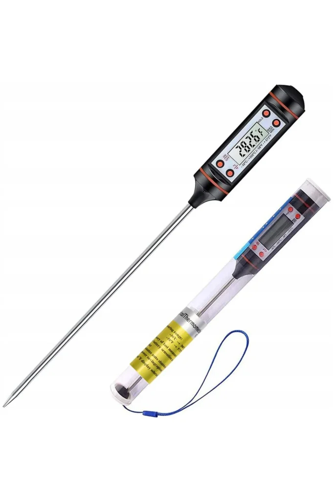- Zakres temperatur – zwłaszcza jeśli planujesz go używać m.in. jako termometr szpilkowy do świec, warto sprawdzić, czy działa do ok. 300°C.